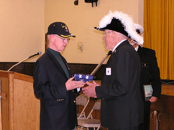 SK Tom McDyer our special honoree, was then called out and escorted by the Color Corp to the lectern. Sir Knight Ed Tinsley 1st Lieutenant US Army read a citation from Congressman Brad Sherman and presented Tom with a flag that had flown over our nations capitol. On May 8th 2011.